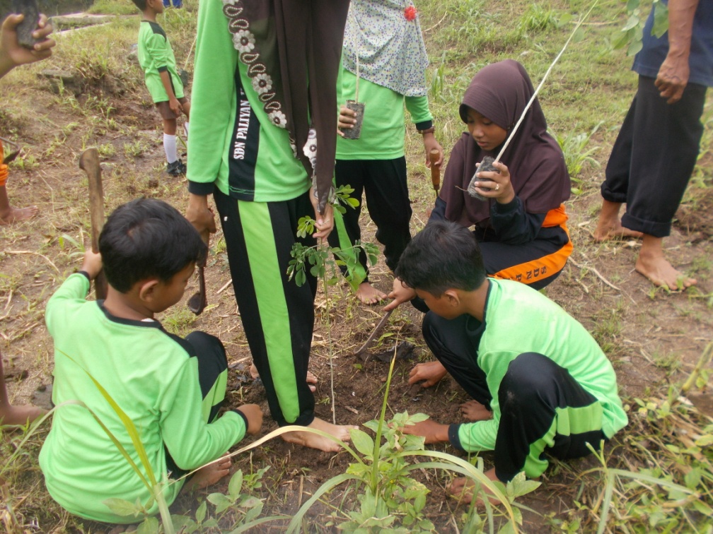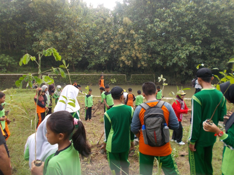 Deskripsi : Aksi Tanam Pohon dalam rangka memperingati hari Air sedunia dilaksanakan di Bantaran Sungai Kendong lokasi berdekatan dengan SDN Paliyan II